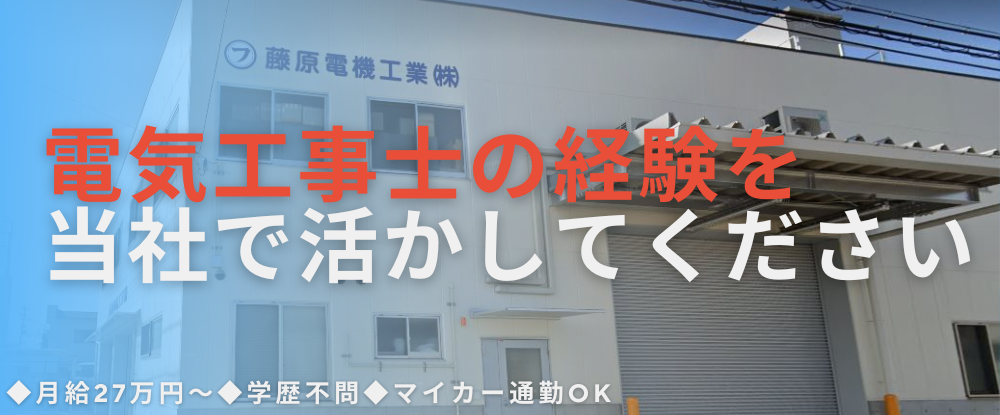 当社は、電気工事業務を通じて多くの未経験者を一人前のエンジニアへと育成してきました。 藤原電機工業株式会社では、未経験からでも一人前の電気工事士として活躍できるよう、 丁寧な指導と資格取得支援制度を...