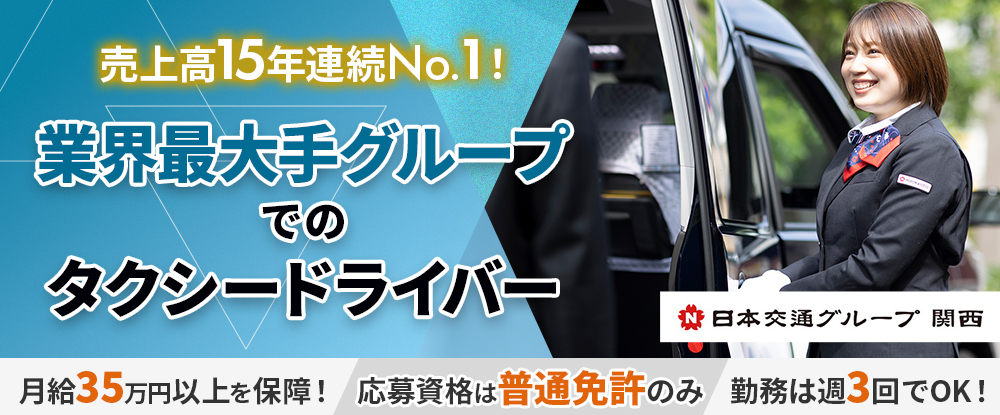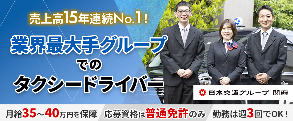 \\業界No.1!日本交通グループの正社員採用// ◆大阪・兵庫でのタクシー・ハイヤー業務 ◆未経験者を積極採用中!資格取得からサポート ◆配車アプリで効率的な業務を実現! ◆入社後1~2年で年収...