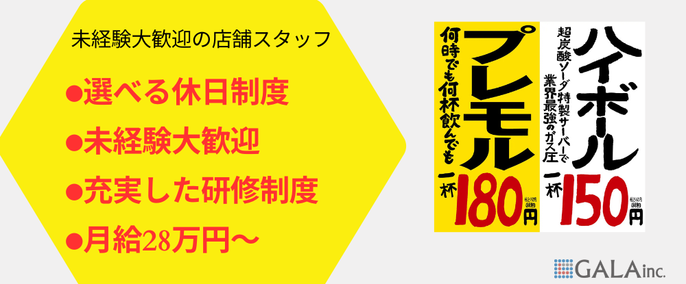 人気居酒屋の店舗スタッフ◆店長候補/月給28万円以上/賞与年2回/未経験者歓迎/完全週休2日◆