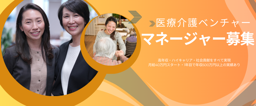 医療介護ベンチャーのマネージャー◆未経験者歓迎/営業・販売出身/1年目年収600万円の実績/面接確約