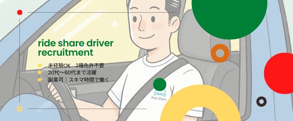 ライドシェア・運転手◆年齢不問/未経験者歓迎/パート・アルバイト/普通自動車免許でOK◆