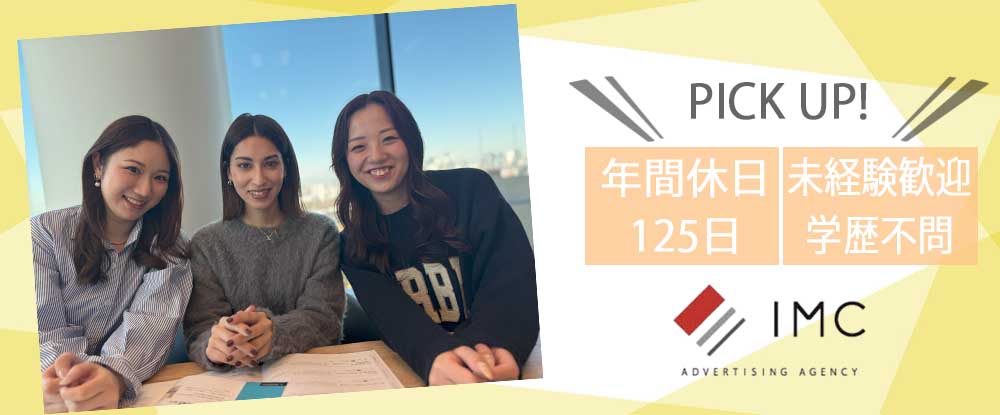 株式会社IMCでは、広告紹介サイトの運営を支える事務スタッフを募集しています。 入稿管理や問い合わせ対応、キャンペーン情報の案内など、 営業やクライアントと連携しながら進める“社内外の架け橋”となる...