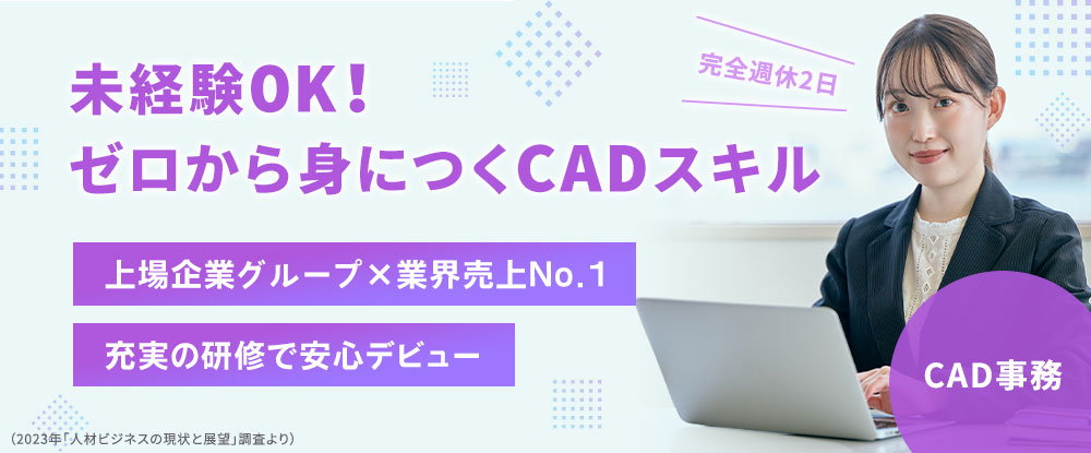 CAD事務◆未経験歓迎/ホワイト企業認定/上場グループ企業/転勤なし/志望動機・自己PR不要◆
