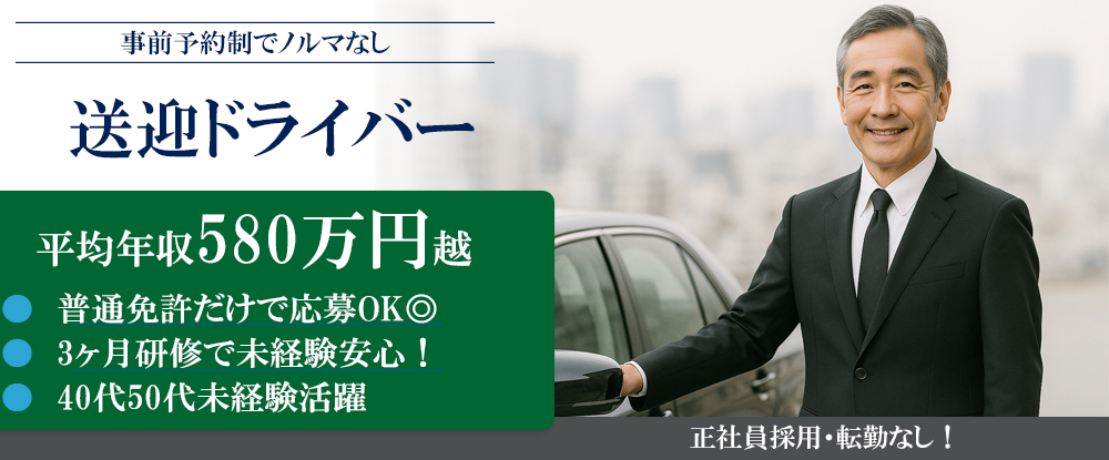 送迎ドライバー◆平均年収580万円超/40~50代の未経験者が多数活躍中!/完全予約制&研修充実◆