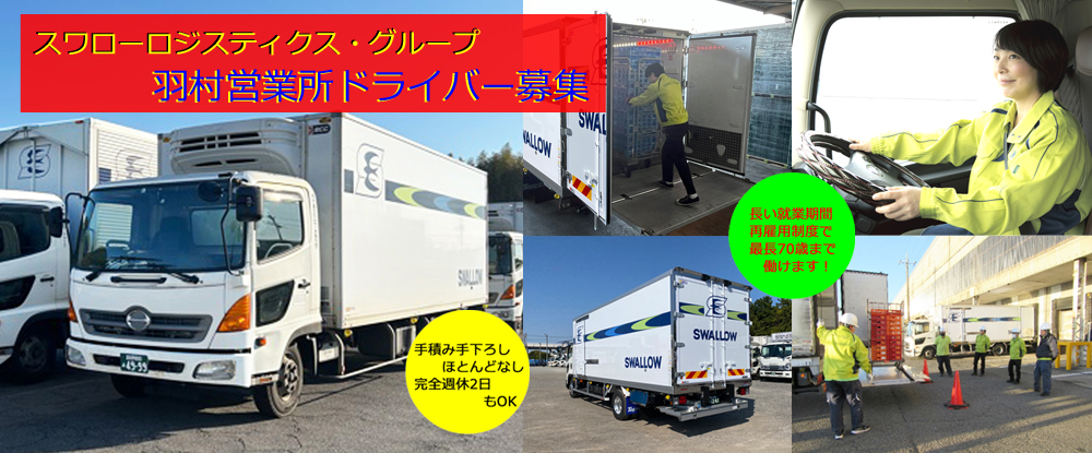 「スワロー輸送」、「スワロートラック」、 「千葉スワロートラック」、「京浜スワロートラック」の 物流会社4社にて、首都圏中心に 運送業務と物流センター運営業務を行っている当社。 有名スーパーやホー...