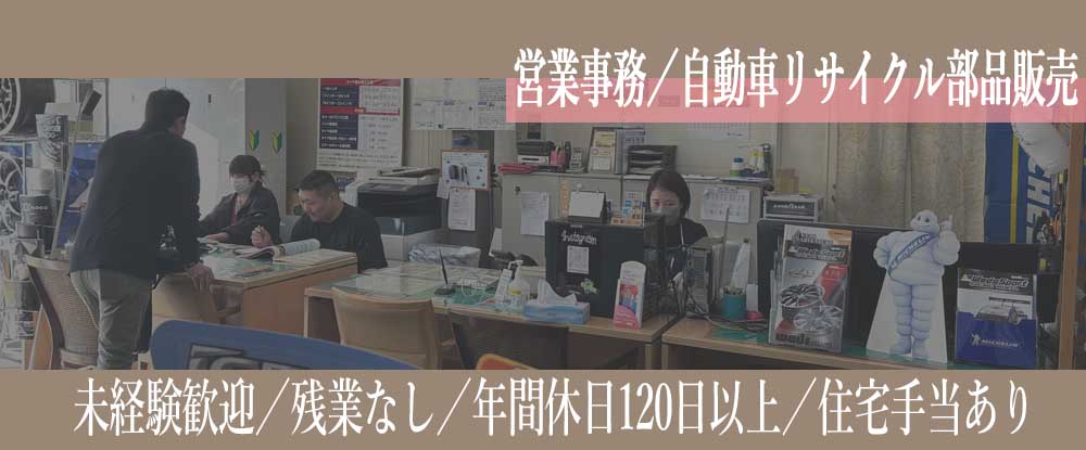 営業事務/自動車リサイクル部品販売◆未経験歓迎/残業なし/年間休日120日以上/住宅手当あり◆