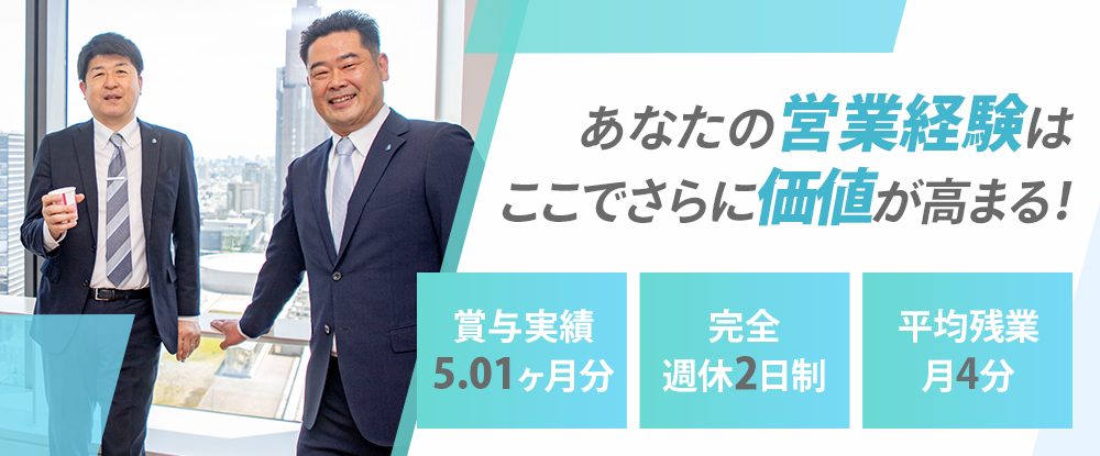業種・商材を問わず営業経験を活かせる法人営業◆賞与実績5.01ヶ月分/完週休2日/残業ほぼなし◆