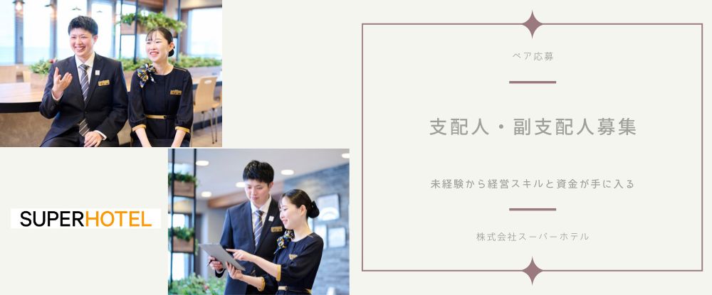 ホテルの支配人・副支配人◆ペアで応募/制度あり。年間最大400万円/家賃・水道光熱費不要◆