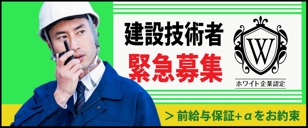 昨今の建築業界は人手不足が慢性化しており、 中でも施工管理士・設計職は高い需要にあります。 需要は高い一方、労働環境・給与条件などに不満を抱えている施工管理士も少なくありません。 当社は ホワイト...