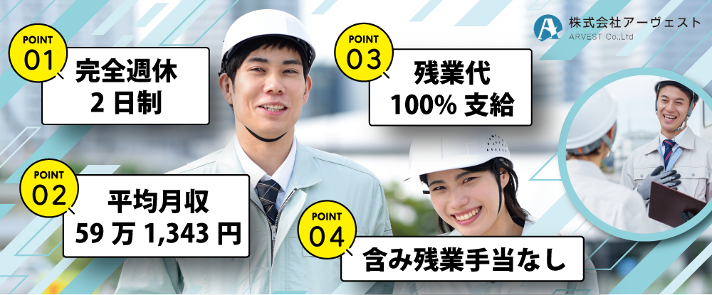 【施工管理】◎平均月収59万1,343円/含み残業手当なし/残業代100%支給◎/完全週休2日制