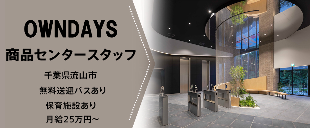 首都圏エリアでのサービス強化と新規出店に伴い、 話題のCMで注目されるOWNDAYSでは新たな仲間を募集しています。 未経験者でも安心の研修制度があり、成長を見据えたフォロー体制も万全です。 憧れ...