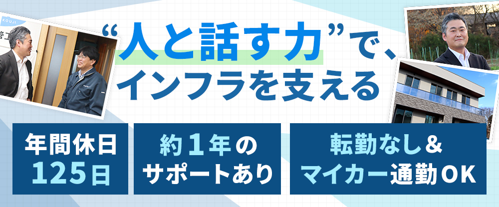 “人と関わるのが得意”を活かせる水道工事の【申請進行管理】/年休125日/資格取得支援有