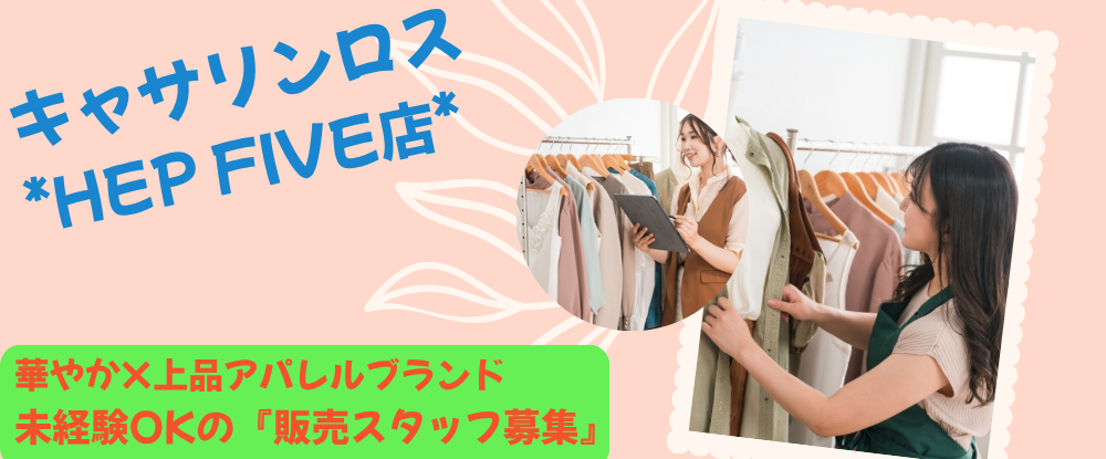 アパレル未経験でも大丈夫! 研修制度や優しい先輩のサポートがあるから、安心してスタートできます◎ HEP FIVE内の人気ブランドで、“誰かの特別な日”を一緒にお手伝いしませんか? 週3~OK・シフ...