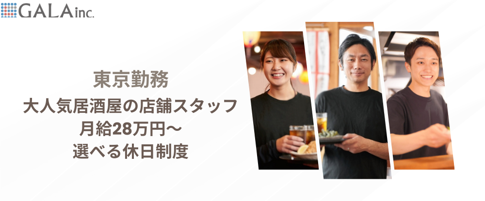 人気居酒屋の店舗スタッフ◆店長候補/月給28万円以上/賞与年2回/未経験者歓迎/完全週休2日◆
