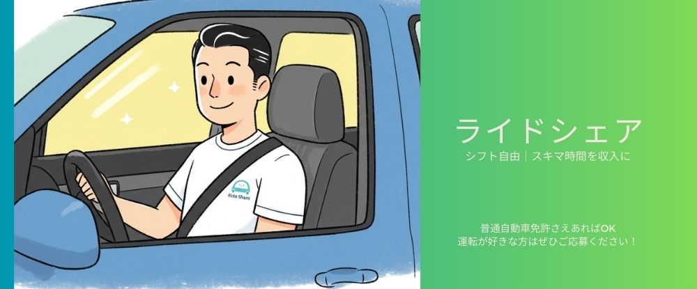 | 仕事内容 | スキマ時間にサクッと稼げる♪今話題のライドシェアドライバー募集!普通免許があれば応募OK!! |