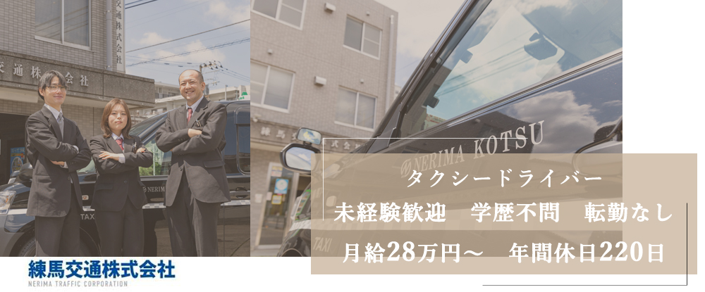 タクシー運転手◆未経験歓迎/年間休日220日/最低保障額28万円/東京都練馬区◆