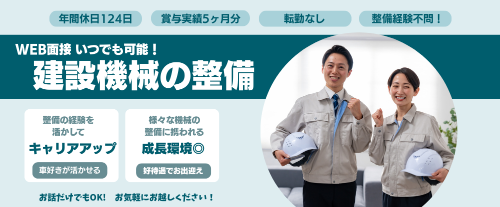 自動車メーカーの経験者が多数活躍!建設機械の整備士◆昨年度賞与実績5ヶ月分/年間休日124日◆