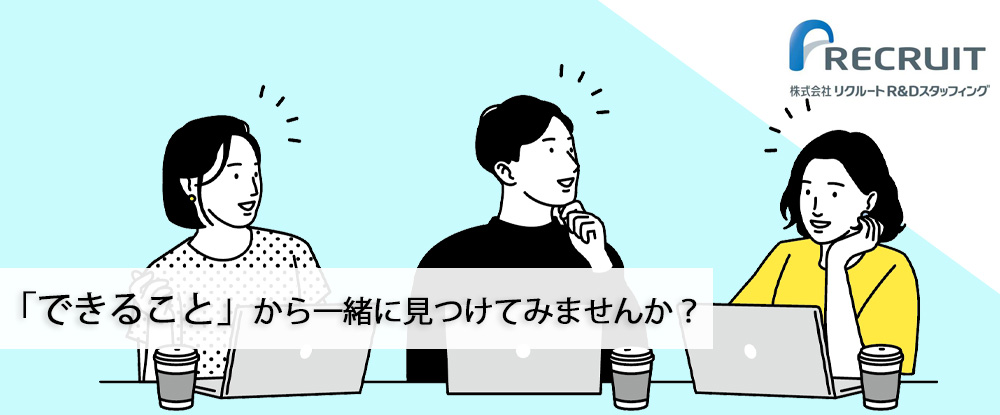 ■新卒・第2新卒の皆さんへ リクルートR&Dスタッフィングでは、新たな仲間を歓迎しています! 業界・社会人未経験の方でも、あなたの「挑戦したい」という気持ちを大切にします。 ここでの経験を通じて、必要なスキルと自信を身に付けることができます。 これからのキャリアを一緒に考え、成長していきましょう! まずはお気軽にご応募ください。 ■新しい仕事環境への挑戦を考えている方へ 今の会社に満足していない方、キャリアチェンジを考えているなら、 リクルートR&Dスタッフィングで新しいチャンスを掴みませんか? 多様なプロジェクトとサポート体制が整っている当社では、 あなたのこれまでの経験を活かし、成長する機会が満載です。 新しい環境で、再スタートを切るあなたをお待ちしています。 自分らしい働き方を実現するために、ぜひ一歩踏み出してください!