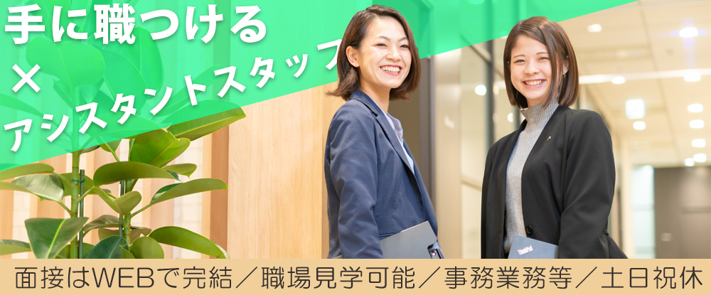 アシスタントスタッフ◆面接はWEBで完結/職場見学可能/事務業務等/土日祝休/国家資格取得可能◆