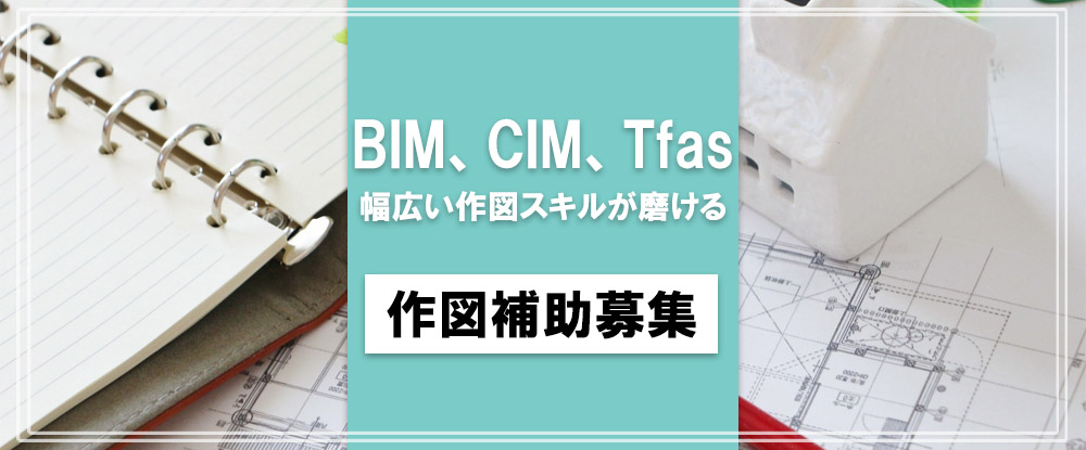 CADオペレーター・作図補助◆BIM、CIM、Tfasなど幅広く作図スキルが磨ける/前職収入UP可◆