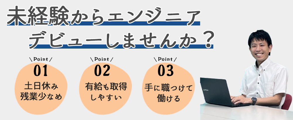 ■完全週休二日制(土日祝) ■GW休暇 ■夏季休暇(3日) ■年末年始休暇(5日) ■有給休暇(消化率100%) ■産前産後休暇(取得実績あり) ■育児休暇(男女とも取得実績あり) |
