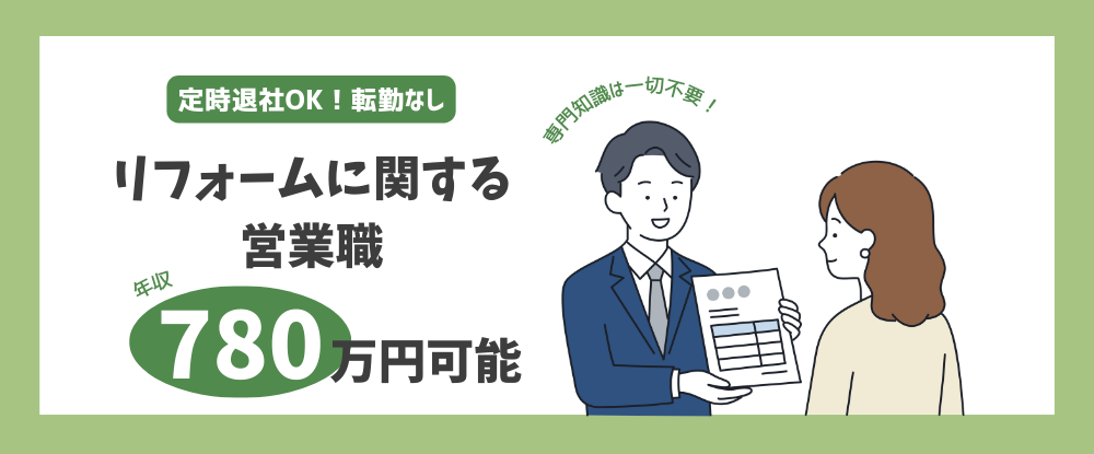 リフォームに関する営業職◆アポイント獲得でインセンティブ/2年目で年収780万円可/転勤なし◆