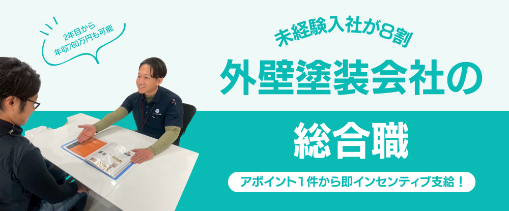 外壁塗装会社の総合職◆インセンティブだけで+17万円も可能/転勤なし/幅広い年齢層が活躍中◆