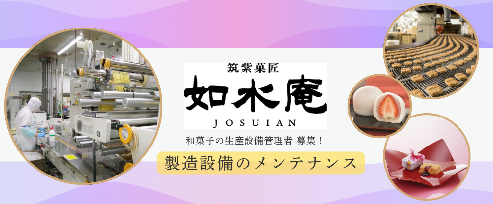 福岡の老舗和菓子メーカーである如水庵。銘菓「筑紫もち」などを手がける当社では、新ライン設立に伴う新たな製造設備導入を見据え、社内体制を強化するため、製造設備管理の経験者を募集します。設備の安定稼働を担うキーパーソンとしての活躍を期待しています。