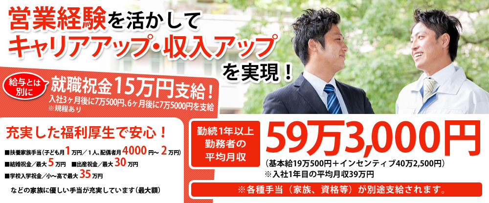 | 仕事内容 | 知識ゼロからでもプロに。キャリアアップできる環境あり!お客様の「ありがとう」があなたの成長につながる |
