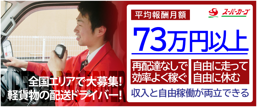 軽配送ドライバー◆平均報酬額73万円以上/普免があればOK/稼働も休日も自由/充実した研修制度◆