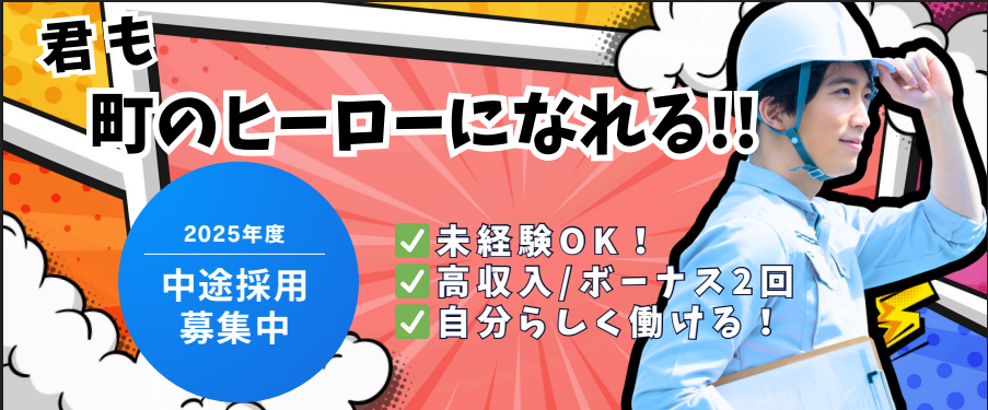 | 仕事内容 | 排水管を高圧洗浄機で清掃、メンテナンスを行います♪チームで活動するので、1人作業はありません! |