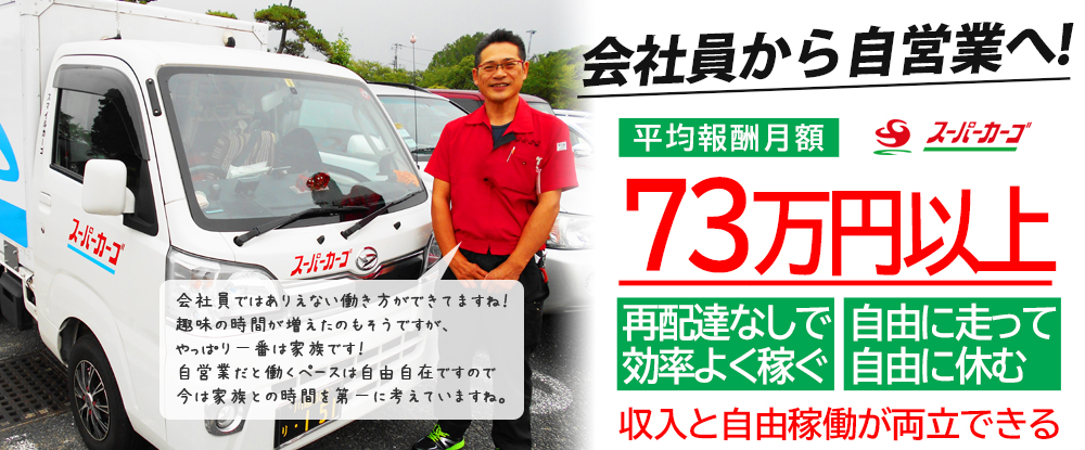 「とにかく稼ぎたい」 「副業と両立したい」 「子育て、介護の時間を作りたい」 そんなサラリーマンでは実現困難な事も自営業なら可能! 多くの仲間が助け合うスーパーカーゴならではの魅力です! <スー...