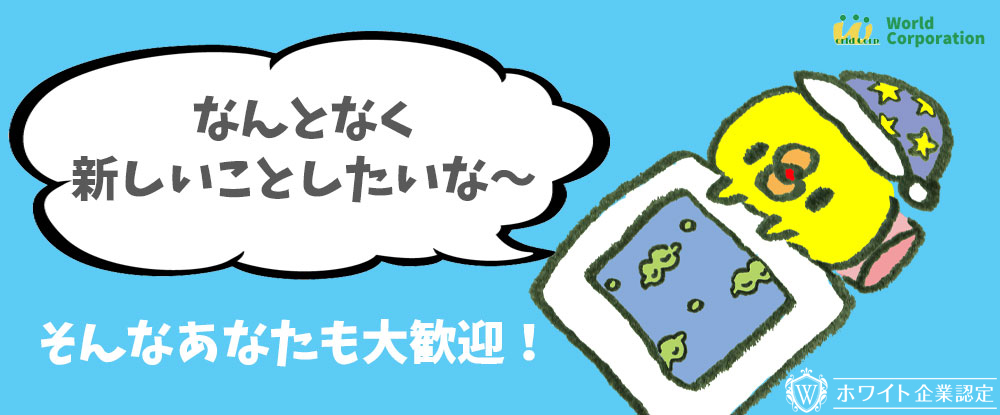 当社は「ホワイト企業認定」を取得し、働きやすい環境づくりを徹底しています。 \SNSで特別情報も発信中/ Instagramで「world_corp_recruit」と検索! メンバー紹介など限定公...