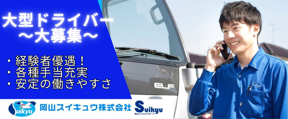 ◆安定した企業で安心して働けるチャンス! 当社は創業60年以上の歴史を持つ「岡山スイキュウ」グループの一員です。 大手スーパーへのルート配送を担当し、確固たる信頼を築いています。 安定した企業基盤と...