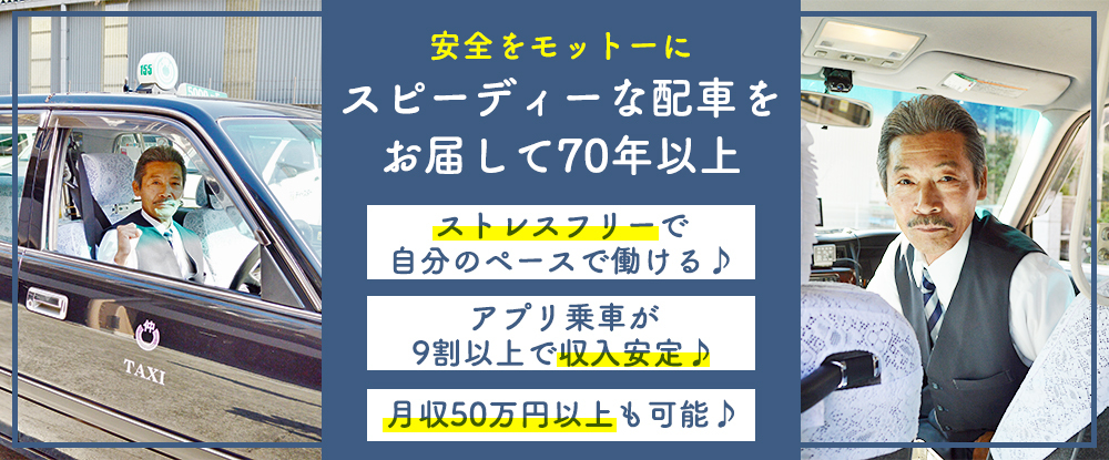 大手グループでのタクシードライバー◆未経験歓迎/業界最大級グループ/幅広い年代が活躍/ノルマなし◆