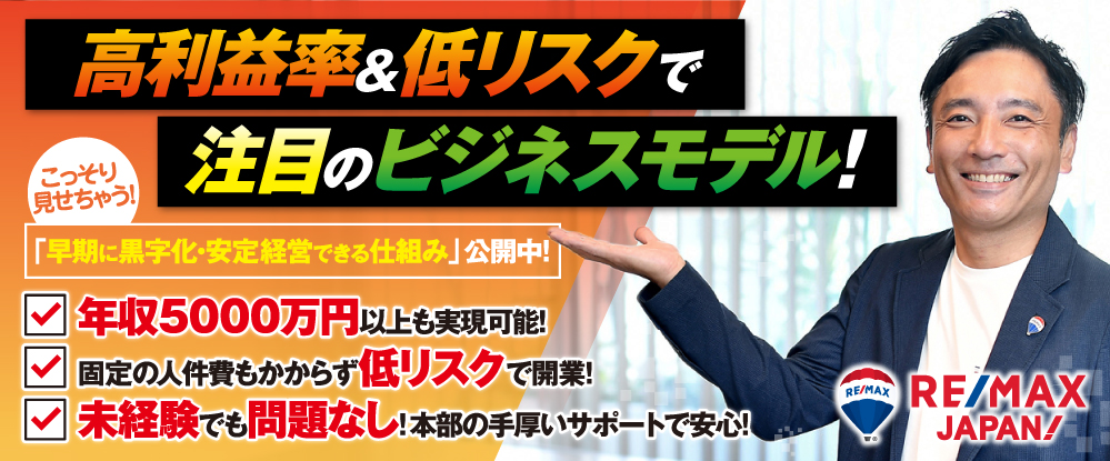 RE/MAX とは、1973年アメリカで誕生した創業50年の世界最大級不動産FCブランドです。 ▼「RE/MAX エージェント」とは? 不動産を貸したい、借りたい、売りたい、買いたいお客様に対して...