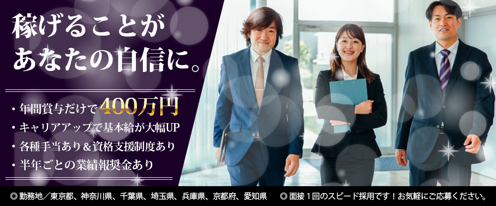 ■■■あなたに求めるのは「熱意」のみ■■■ 収入を増やすための強い意志と、目標達成に向けた情熱を持つ方。 「稼ぎたい」「ビジネスマンとして成功したい」そんな気持ちを最重視しており、 今までの経験や年...