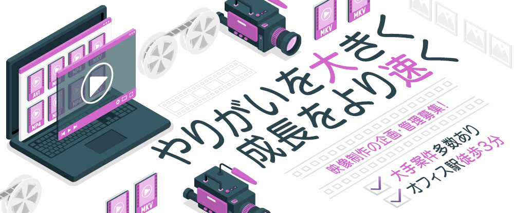 | 仕事内容 | 映像制作の企画や進行管理全般を担当しながら、プロデューサーを目指していただきます! |