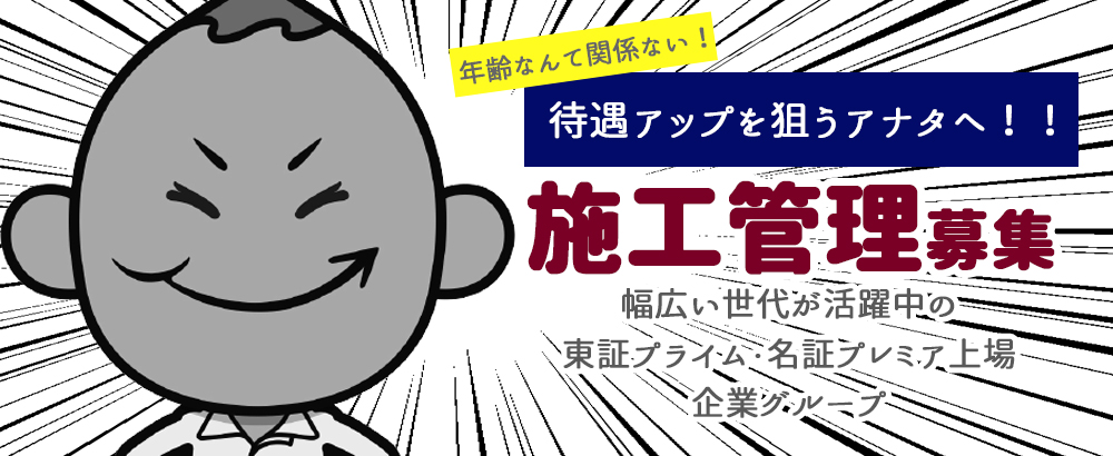 「生涯現役で活躍したい」そんな経験者に選ばれている当社。 今回も幅広い年代を視野に入れ、施工管理経験者を募集いたします。 ▼東証プライム・名証プレミア上場企業グループ▼  ̄ ̄ ̄ ̄ ̄ ̄ ̄ ̄ ̄ ̄ ̄ ̄ ̄...