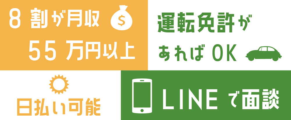 「とにかく稼ぎたい」「副業と両立したい」 「自由に働きたい」「子育て、介護の時間を作りたい」 そんなサラリーマンでは実現困難な事も自営業なら可能! 当社で、配送ドライバーとして活躍しませんか? ⌒...
