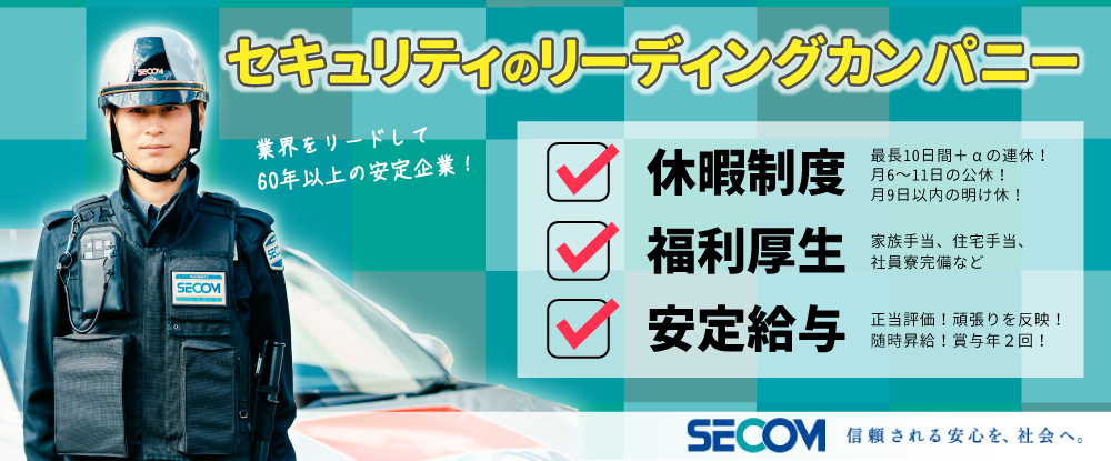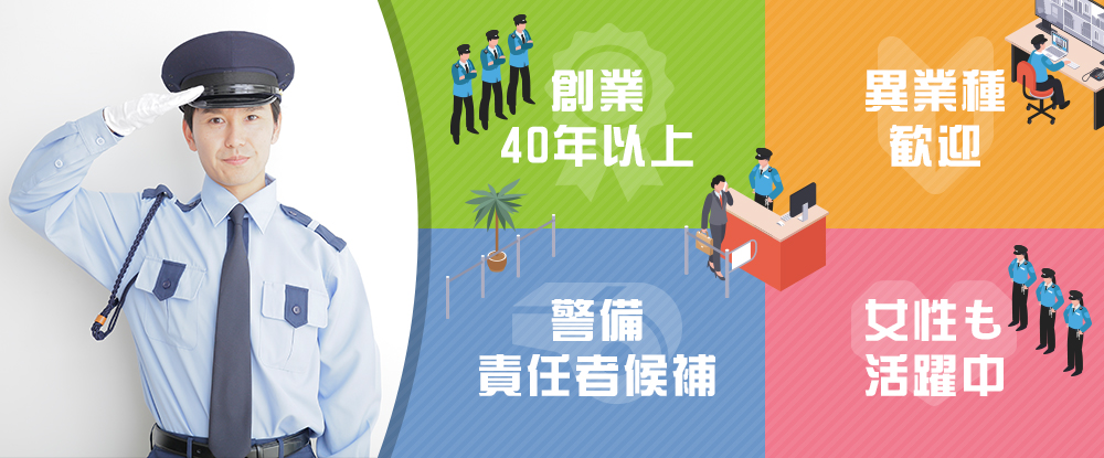 | 仕事内容 | 《未経験から育成します》機械警備や常駐警備などを、適性に合わせてお任せします!※豊富なキャリアパス有 |