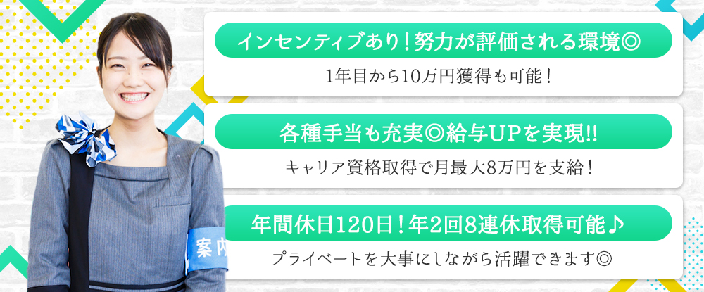 | 仕事内容 | 京都エリアでの警備業務を中心にお任せします。※適性に応じて人員管理などの人事関連業務もお任せ |