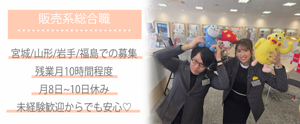 | 勤務地 | 【転勤なし】埼玉県/群馬県/兵庫県/京都府/岩手県/宮城県/山形県の各店舗 |