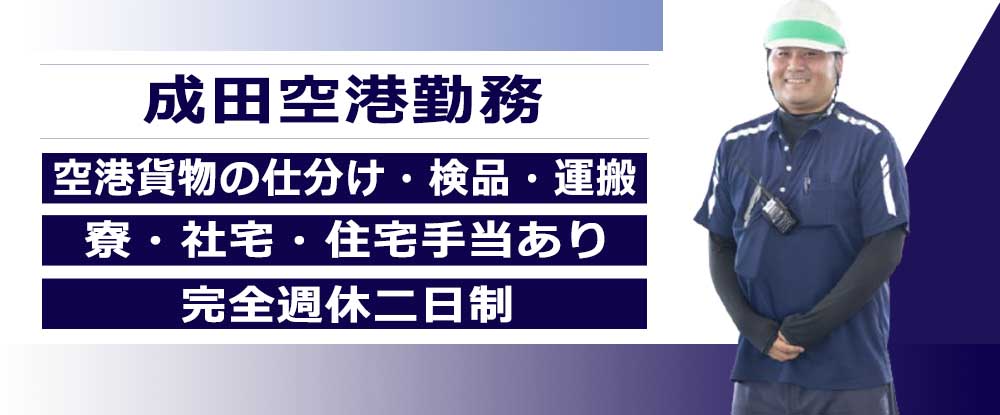 空港貨物の仕分け・検品・運搬スタッフ◆成田勤務/未経験歓迎/社員食堂あり/寮・社宅・住宅手当あり◆