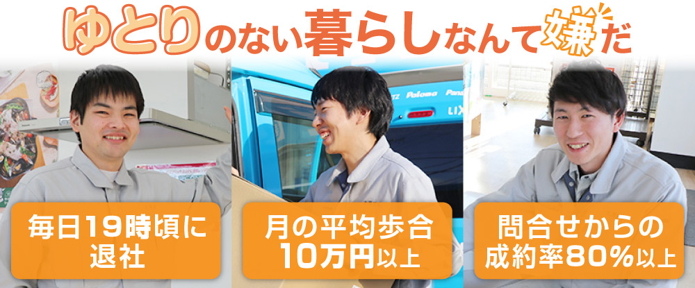 …●安心してスタートが切れる… 当社は新たなスタートを切るあなたを全力で支援。 安心して営業スキルを磨くことができる環境で、 プレッシャーなく仕事に取り組めます。 努力次第でさらに収入アップが見込...