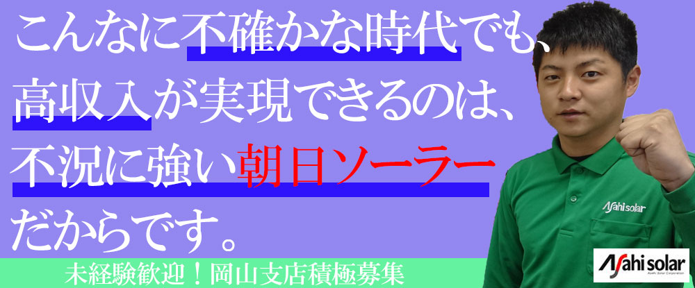 | 勤務地 | 中国エリア(岡山県・広島県)の各支店 ◎転居を伴う転勤なし/U・Iターン歓迎 |