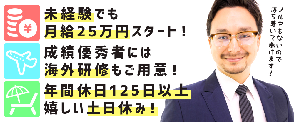 あなたの営業・社会人デビューをイチから応援します!未経験でも月給34万円スタート!若手社員活躍中◎