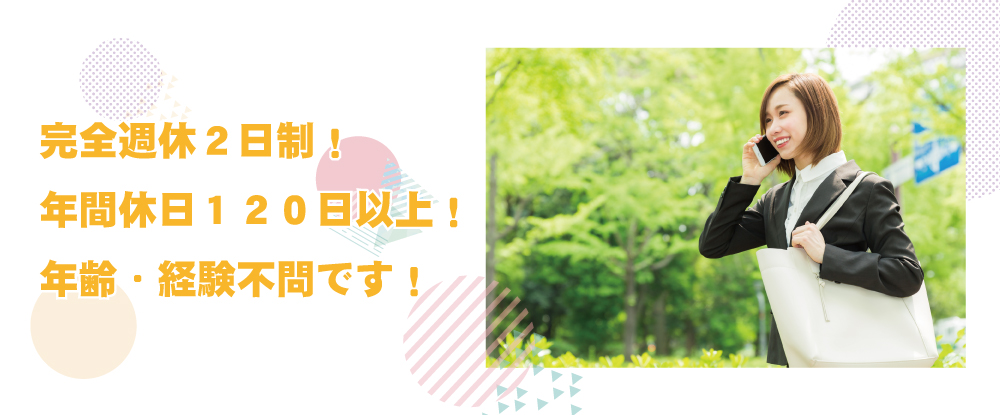 ======================== ★働きやすい環境でプライベートも充実★ ======================== 駅チカ勤務地や週休二日制など、働きやすい環境が整っています...