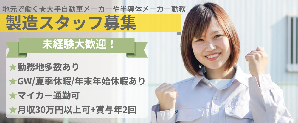 ものづくりスタッフ◆未経験歓迎/学歴不問/賞与年2回/大手メーカーでのお仕事/年間休日120日◆