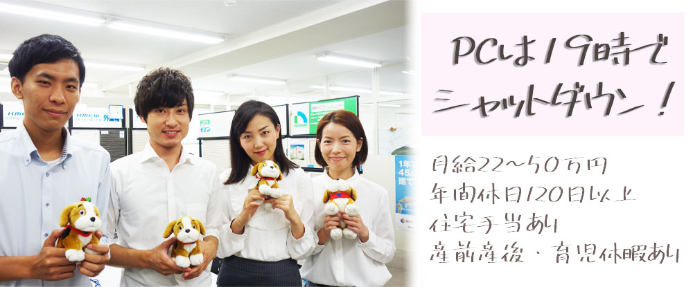 | 勤務地 | 当社の各支店にて活躍していただきます!★転勤はなく、希望勤務地を考慮し決定いたします。 |